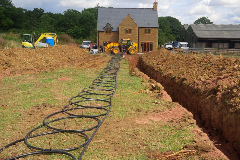 Installing ‘slinkies’ for a ground source heat pump system. (griffithsaircon.co.uk)
